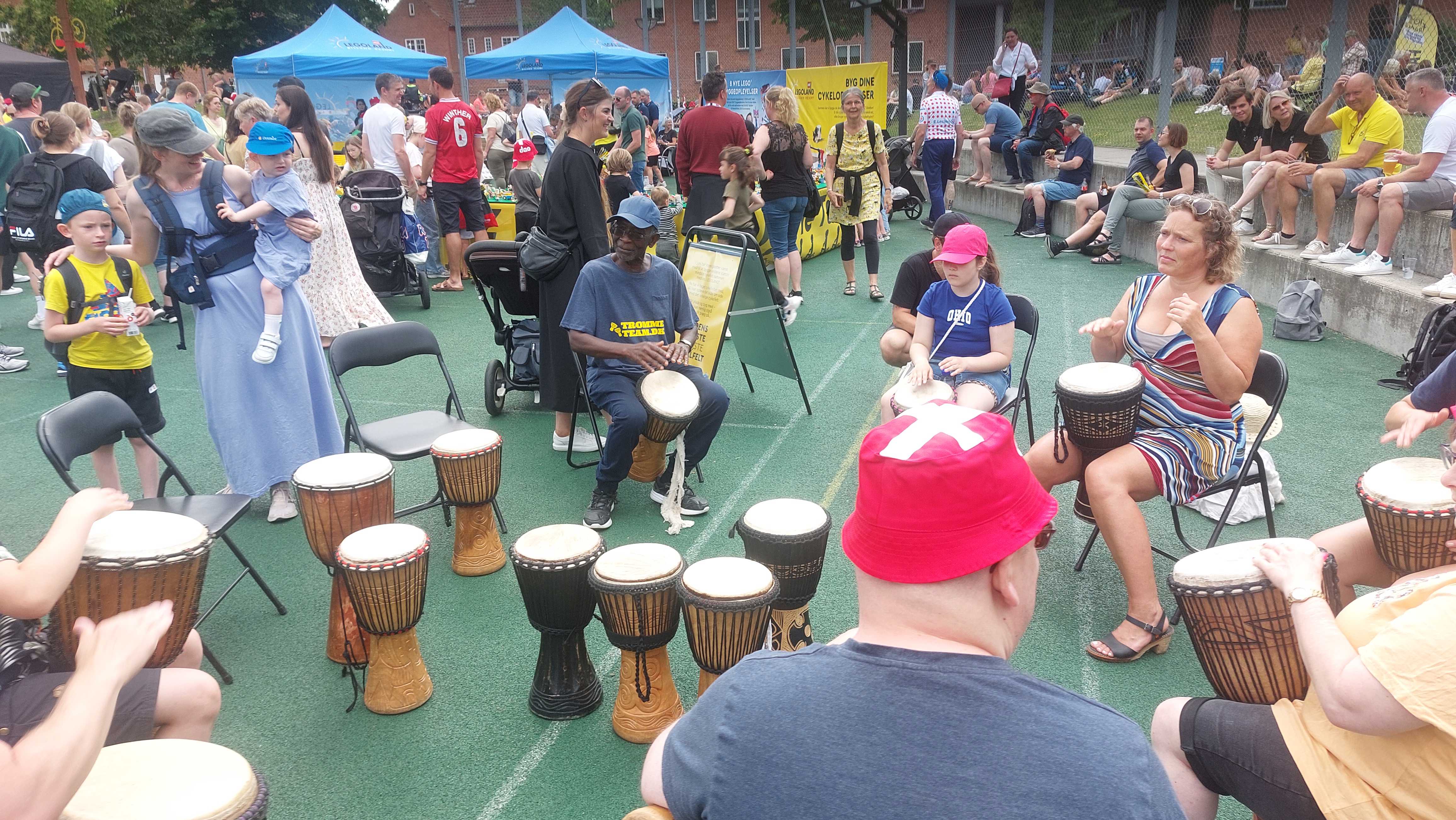 Alle kan deltage i trommeaktiviteten, som afsluttes af en parade, mens trommerne lyder.
