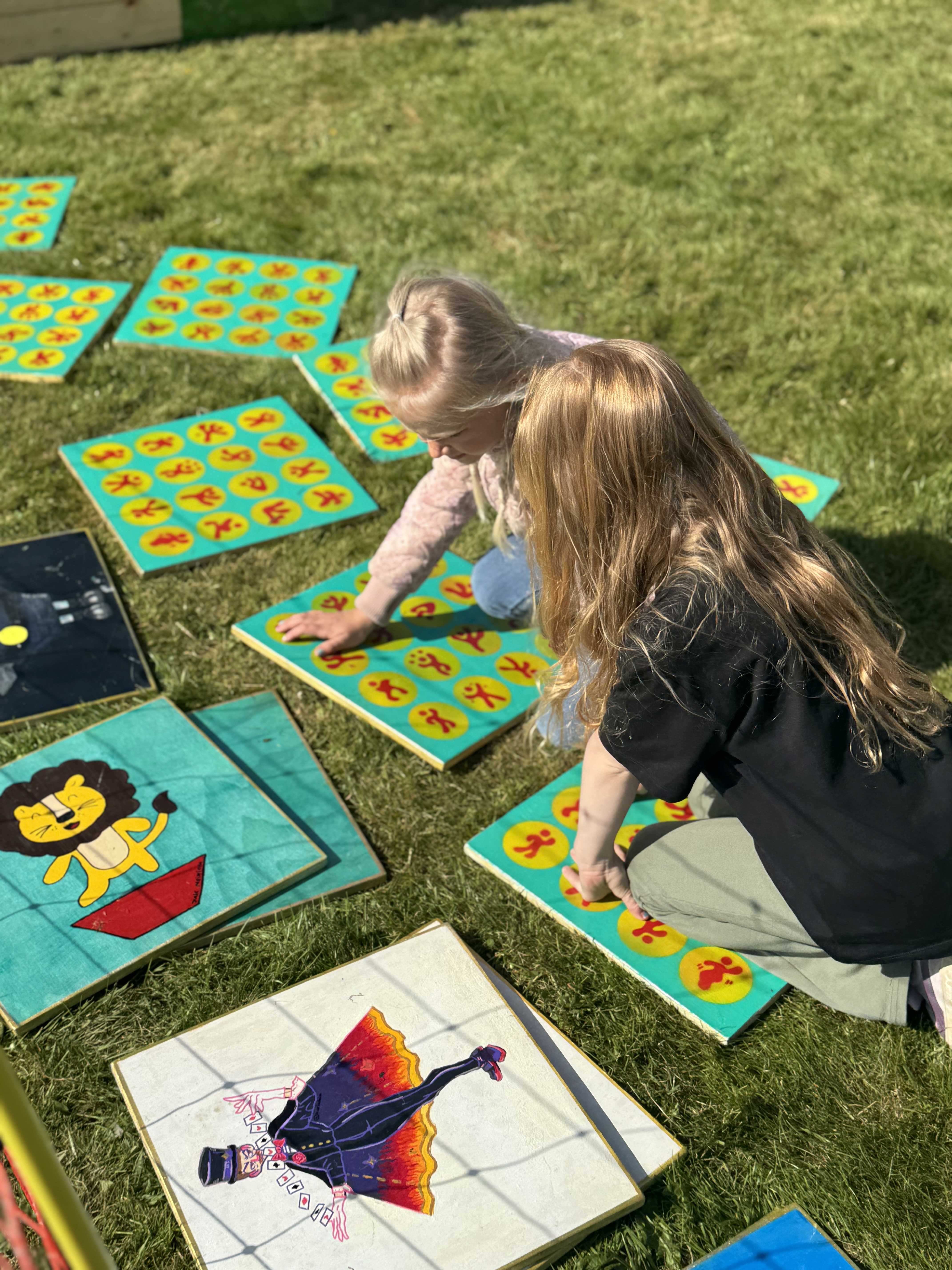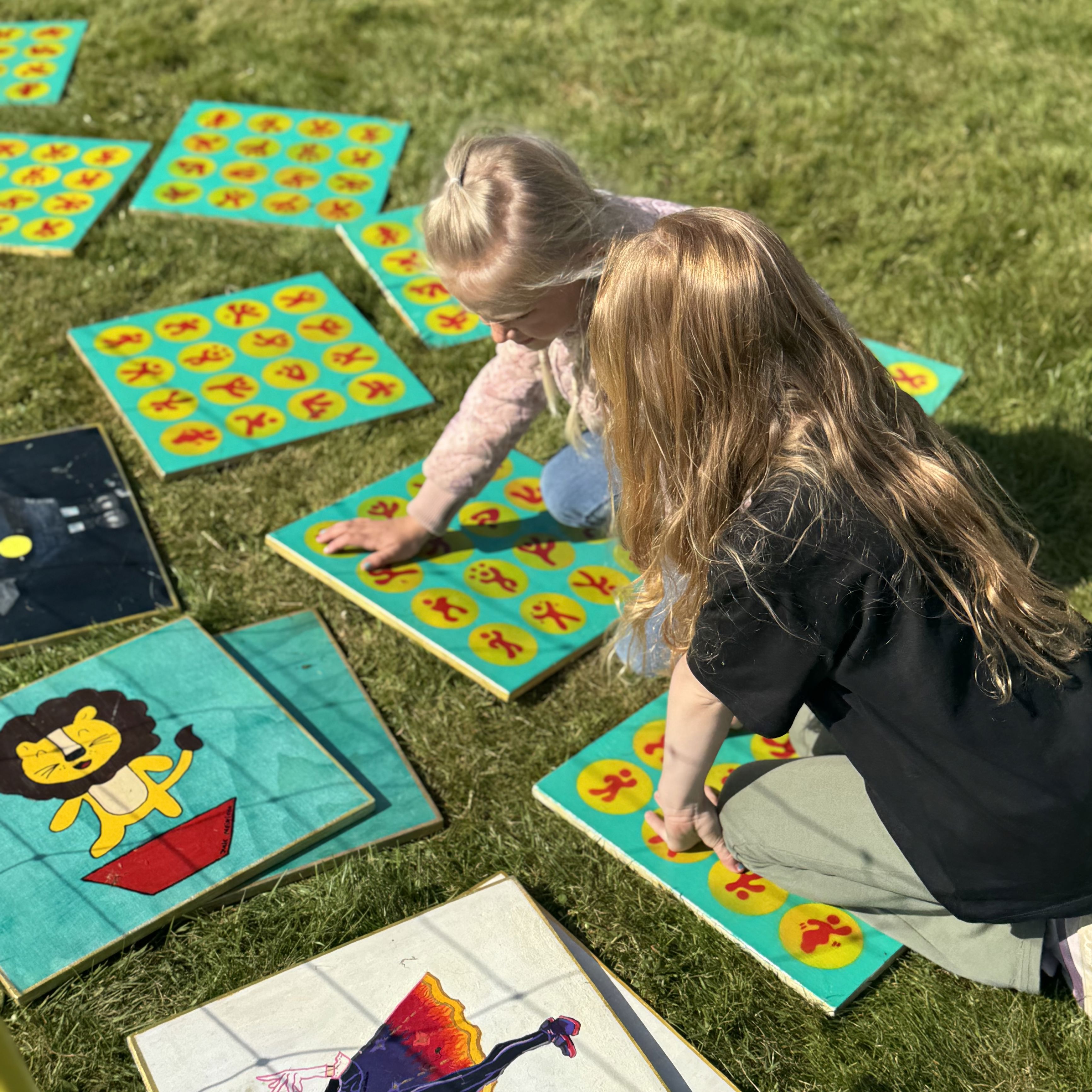 Vendespil med kæmpebrikker malet af lokale og internationale kunstnere og børn fra Kunstkompas. Kom og test din hukommelse med farverige motiver!