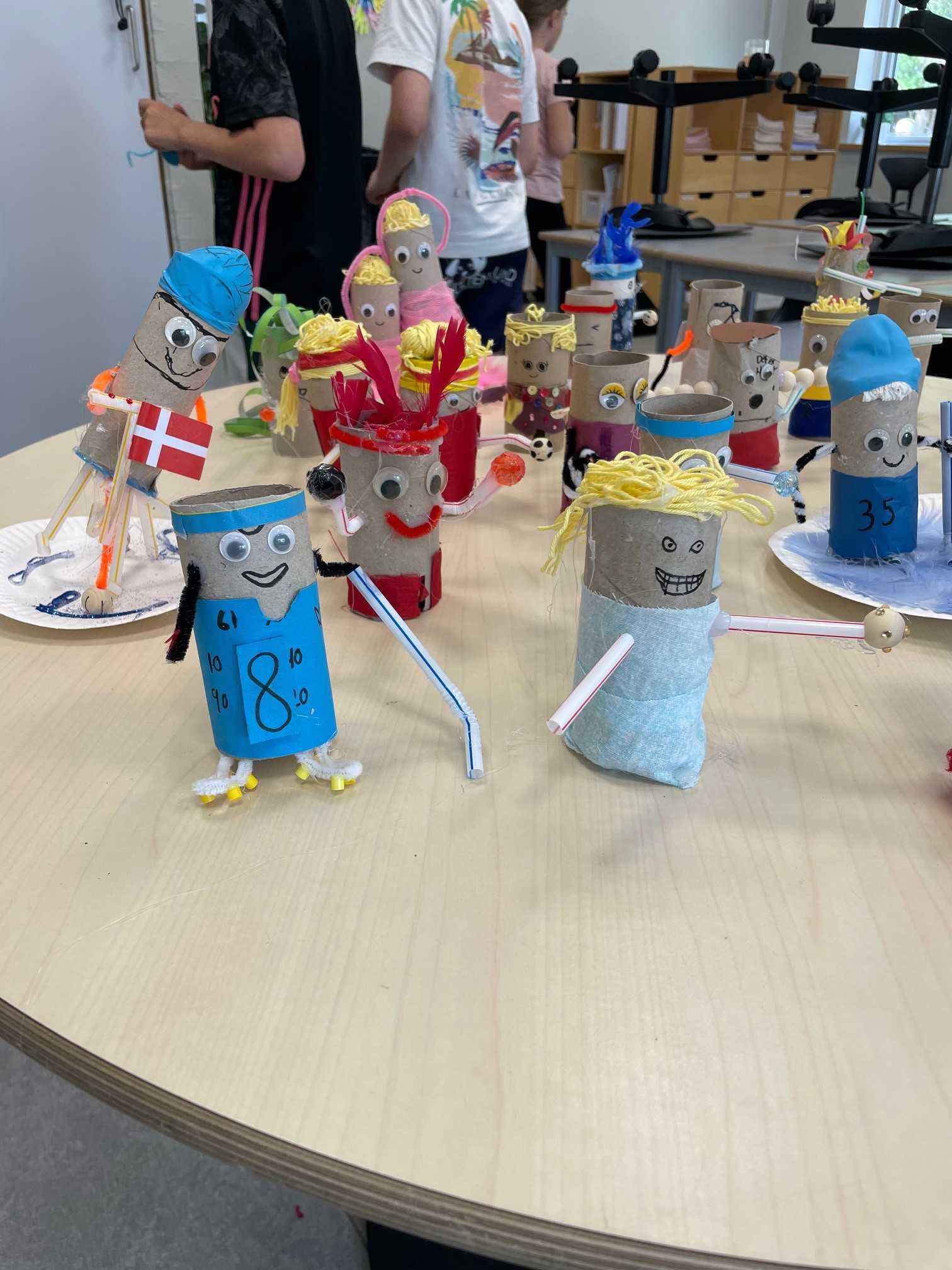 Eleverne fra 3.a på Hældagerskolen har nemlig tryllet brugte toiletruller om til farverige sportsfigurer med alt fra seje svedbånd til rulleskøjter. Og nu skal de udstilles i forbindelse med Familiernes Landsstævne!