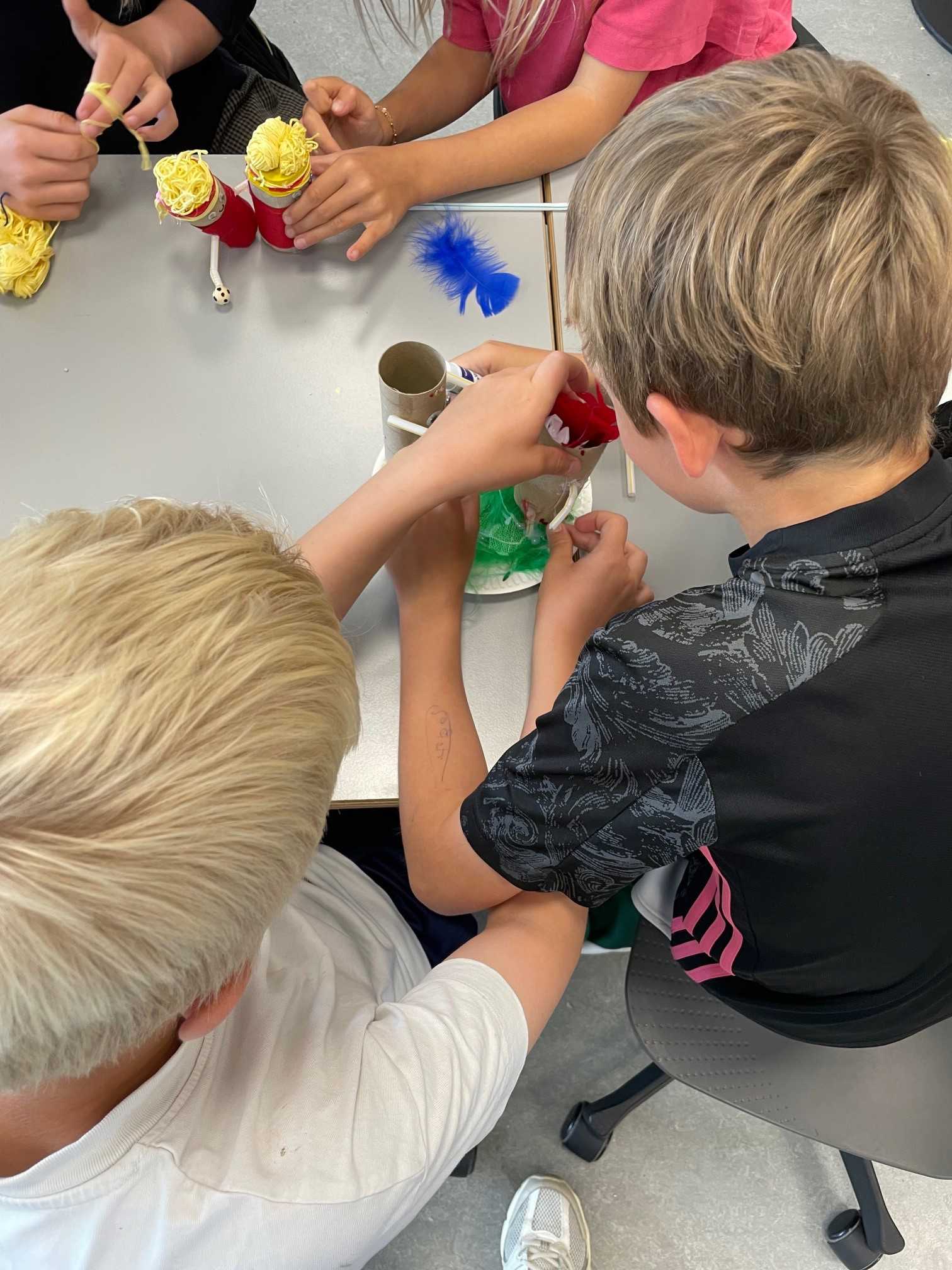 I billedkunsttimen blev saks og lim fundet frem – og så var der frit valg mellem alle sportsgrene. "Det var så sjovt, for man kunne slippe sin fantasi løs," fortæller Anne Marie fra 3.a.